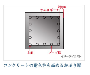 ¥³¥ó¥¯¥ê¡¼¥È¤ÎÂѵ×À¤ò³ÎÊݤ¹¤ë°Ù¤Ë½ÅÍפʤ«¤Ö¤ê¸ü¤Ë¤Ä¤¤¤Æ¤â·úÃÛ´ð½àË¡¤ÇÄê¤á¤ë¿ôÃͤè¤êÌó£±£°mm¤ò¿¤¯³ÎÊÝ¡£¥¢¥ë¥«¥êÀ¤Î¥³¥ó¥¯¥ê¡¼¥È¤¬»À²½¤·°×¤¤Å´¶Ú¤ò¼é¤ê¤Þ¤¹¡£